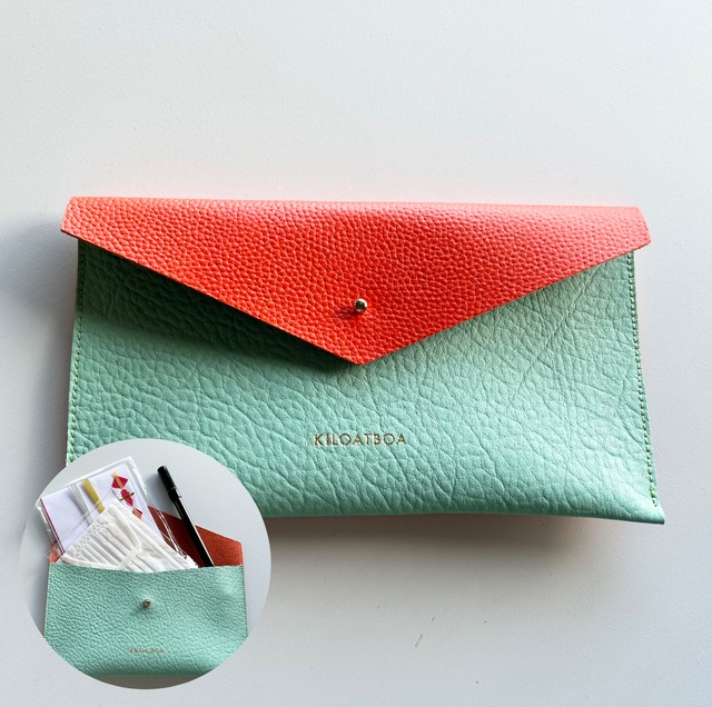御祝儀袋や御香典袋などを入れて袱紗としても使えるサイズ。 使い捨てマスクも収納できるサイズですので、ストックを持ち運ぶ際 バッグの中で嵩張らず便利です。 お薬手帳を入れたり、ポーチとしてもご使用いただけます。 素材 牛革 サイズ H / 17cm W /20.5cm D / 1cm