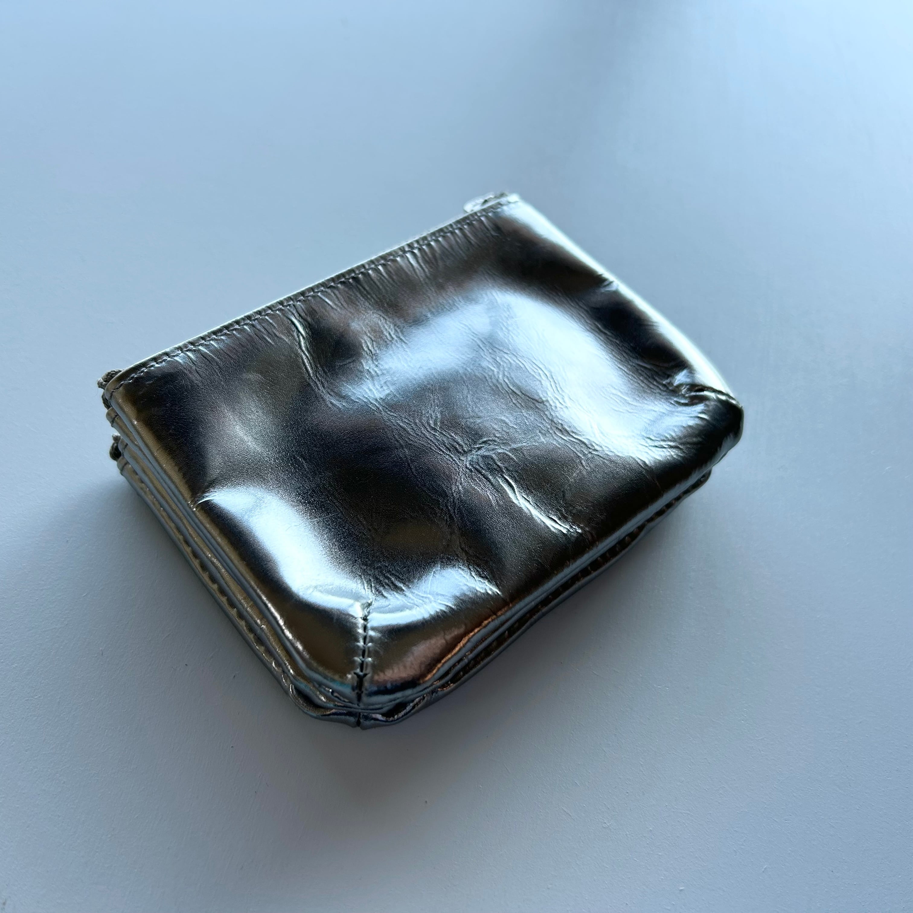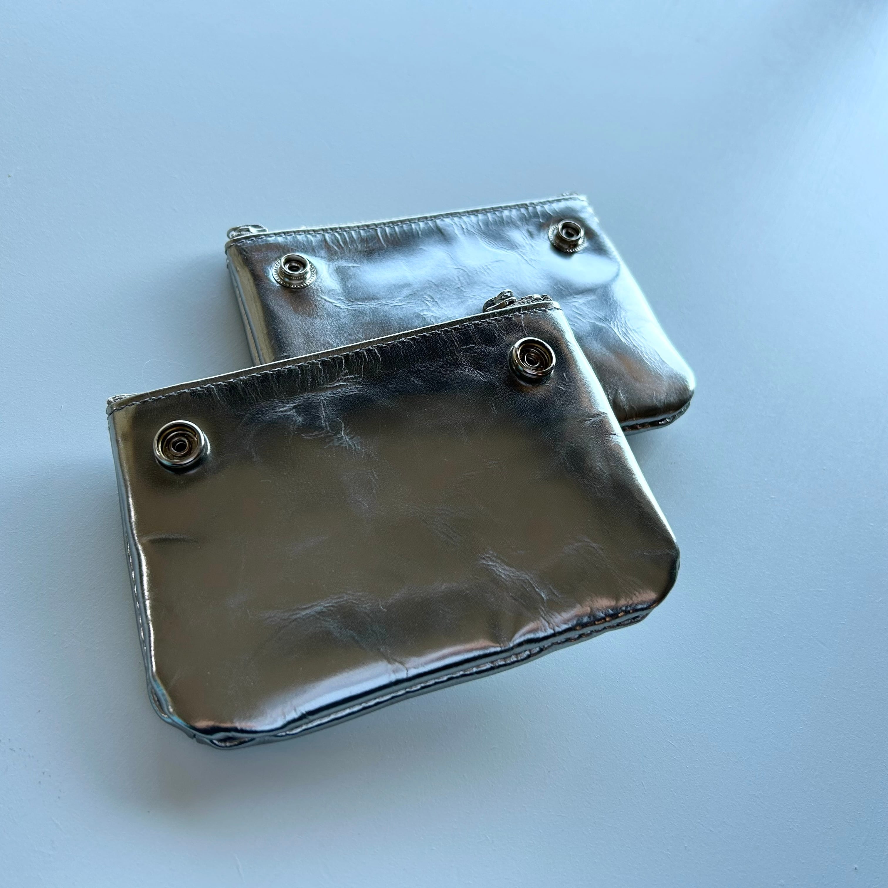革の表面にシルバー箔を敷いた、上品なFOIL POUCH。