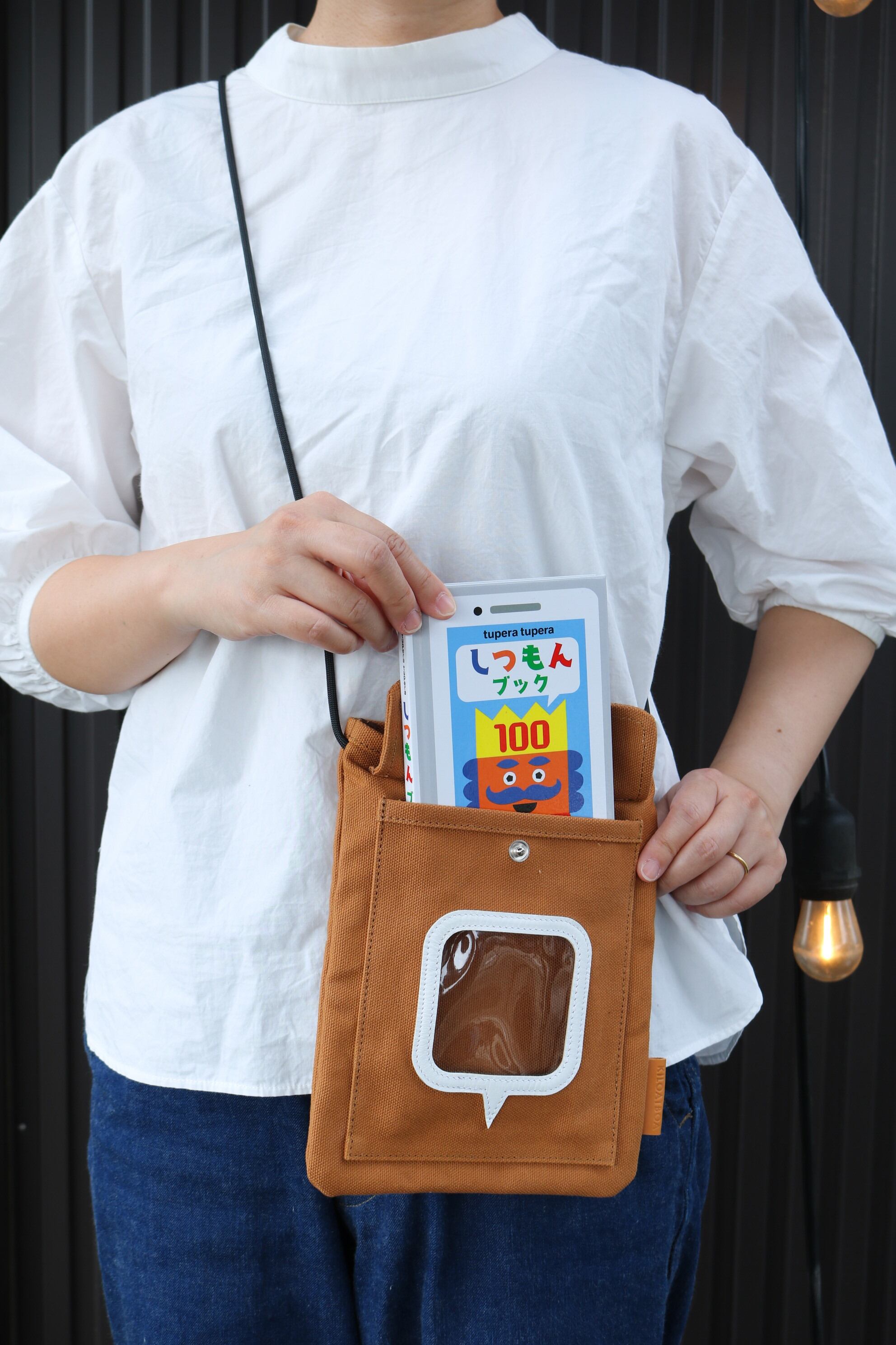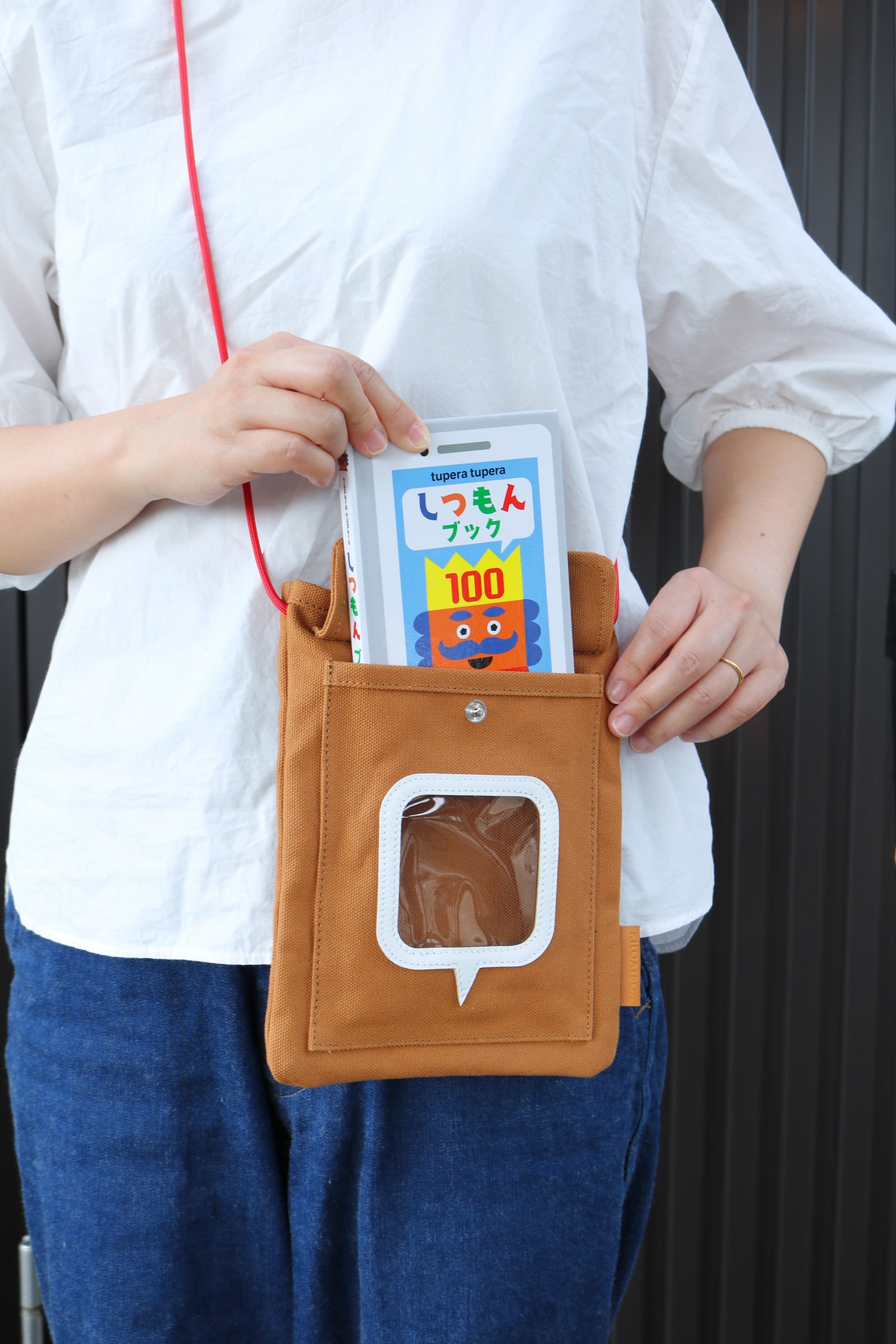 tupera tuperaさんの本 [しつもんブック]を入れるポケットの付いたショルダーバッグ
