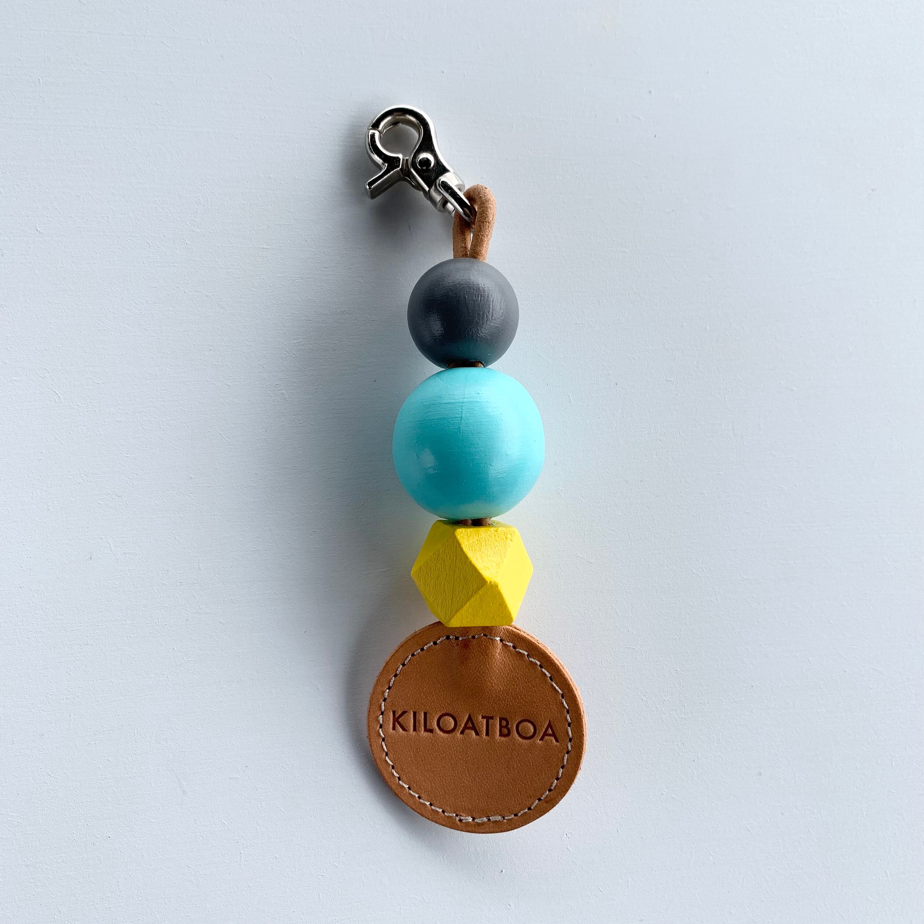 ヴィヴィットなカラーで様々な大きさのウッドビーズを組み合わせた
